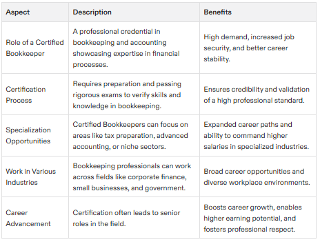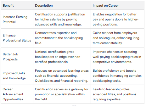 Ultimately, becoming a Certified Bookkeeper is a strategic move for anyone looking to build a stable, rewarding career in the accounting and finance industry, offering increased credibility, earning potential, and career growth opportunities.