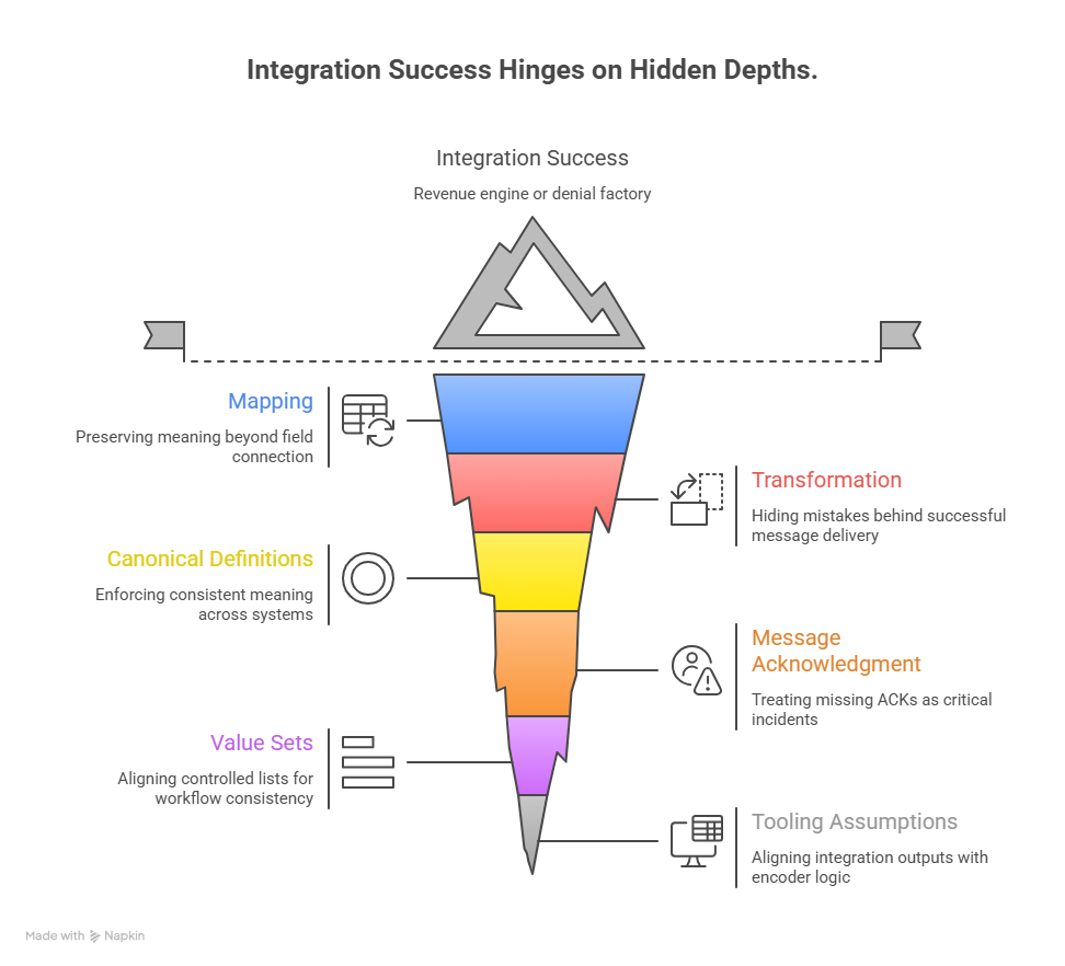EHR integration isn’t just “systems talking.” It’s the controlled movement of clinical and financial data across workflows so that documentation → coding → billing → payment → reporting stays consistent end-to-end. When integration fails, it usually shows up as “coding problems,” but the root cause is often upstream: missing required elements, broken identity mapping, inconsistent timestamps, or data landing in the wrong field.