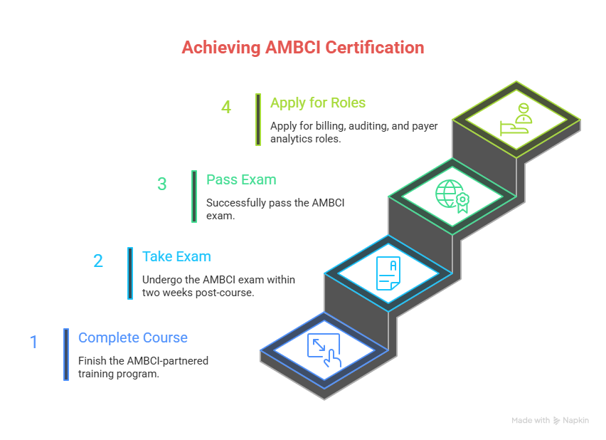 Certification from AMBCI ensures compliance with ICD-10, CPT®, and HCPCS standards while signaling proficiency in both clinical and financial accuracy, which directly reduces claim denials and improves revenue cycle performance.