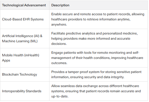 Cloud-based EHR systems: These systems allow for secure and remote access to patient records, ensuring that healthcare providers can retrieve vital information anytime, anywhere.