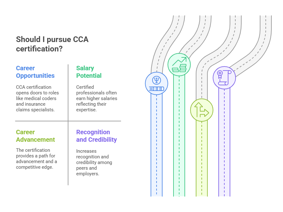 A CCA certification greatly enhances career prospects in the healthcare sector. It is recognized as a standard qualification for medical coding professionals and can lead to a variety of job roles. For example, certified coders may work as medical records auditors, billing specialists, or insurance claims specialists. These roles involve reviewing patient records, converting healthcare services into appropriate billing codes, and ensuring that insurance claims are processed accurately.