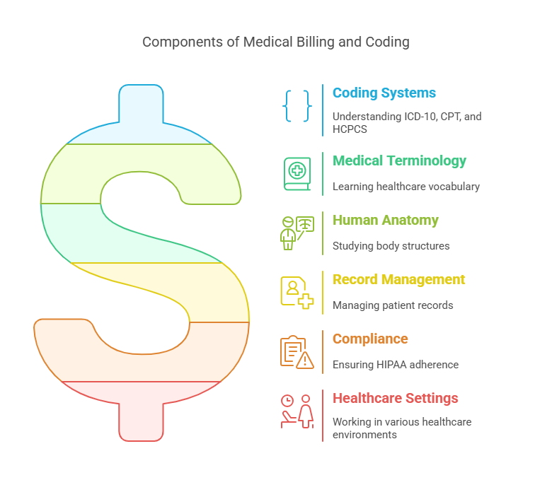Medical billing and coding programs cover several essential topics. You will begin by learning medical terminology, which is fundamental for understanding and accurately coding healthcare services. Knowledge of human anatomy and physiology is also crucial, as it allows you to understand medical conditions and interventions more effectively.